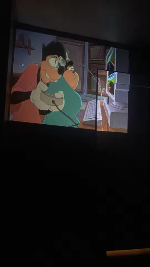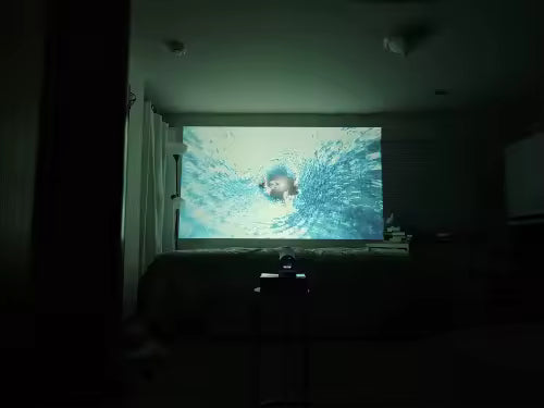Nuestro proyector funciona mejor en habitaciones con poca luz o totalmente oscuras. Tiene 8000 lúmenes y 280 ANSI, suficientes para una imagen clara, pero la experiencia ideal es en ambiente tenue.